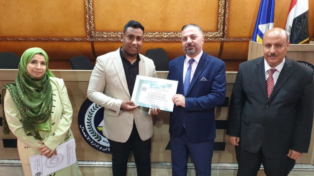 إستلام الطالب محمود محى الدين درع تكريم المعهد العالى للحاسب الالى و اداره الاعمال بالزرقا دمياط لرعايته ملتقى الشباب العربى لريادة الاعمال